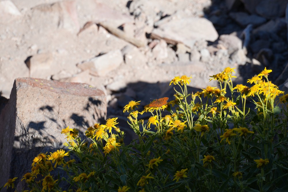 It is rare to see such a large number of butterfly around Crater Lake. The entire national park literally filled with orange-colored butterflies. Unfortunately this also created a lot of “road kills” on the car’s windshield. These small butterflies are moving quite fast, unlike the larger, slower ones seen in our backyard. The wind is strong and the butterflies are floating in the air, I feel like walking among falling leaves. Somehow the butterflies would not bump into you despite the strong wind.