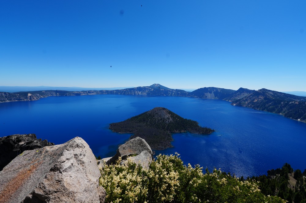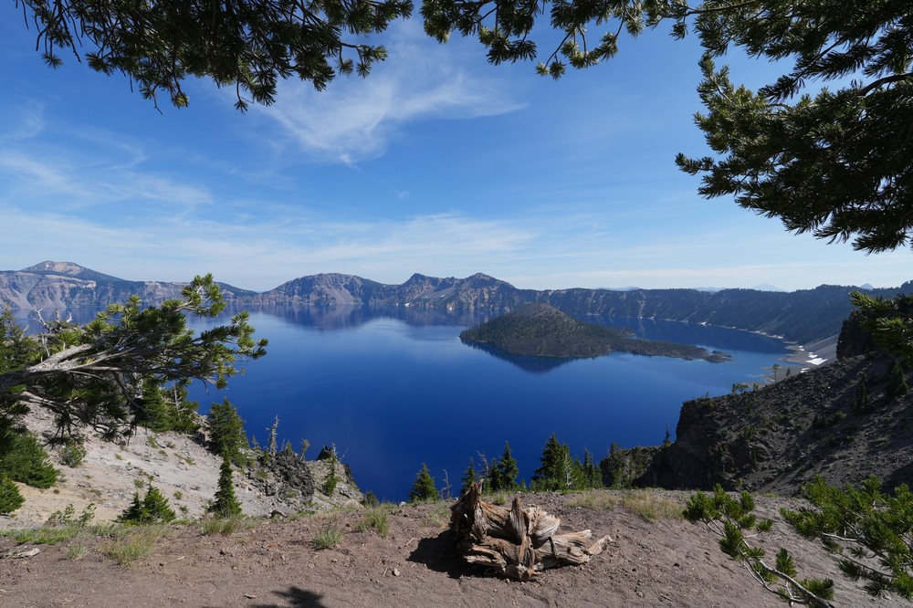Crate Lake is so huge, and this is a really good chance to use my wide angle lens with 11mm focal length. As you can see, the field of view is still not wide enough to capture the left and right rim of the crater.